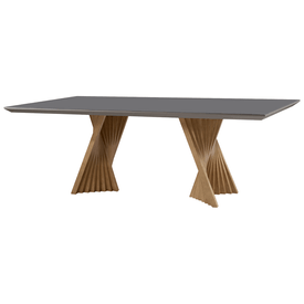 Mesa de Jantar Angelim 220cm x 110cm C/ Tampo em Laca e Vidro Colado Cinza / Base Capuccino