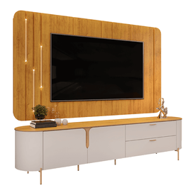 Painel Dumont P/ Tv Até 75" 100% MDF C/ 2 Gavetas e 1 Prateleira C/ LED Freijó / Off White