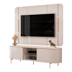 Home Theater Gallant Epsilon P/ TV Até 75" 100% MDF C/ 2 Portas de Correr e Fita LED Off White