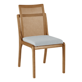 Cadeira Cooper Estofada C/ Puxador Linho Cinza Claro / Nogueira